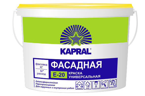 Condor Капрал Е-20 – предназначена для фасадов, помогая образовывать покрытие, которое будет устойчивым к воздействию неблагоприятных условий. Является матовой краской, базовый белый цвет. Можно применять также для внутренних работ. Наносить необходимо на минеральные поверхности и ранее окрашенные водно-дисперсионной краской. Обладает такими свойствами как: высокая адгезия и укрывистость.